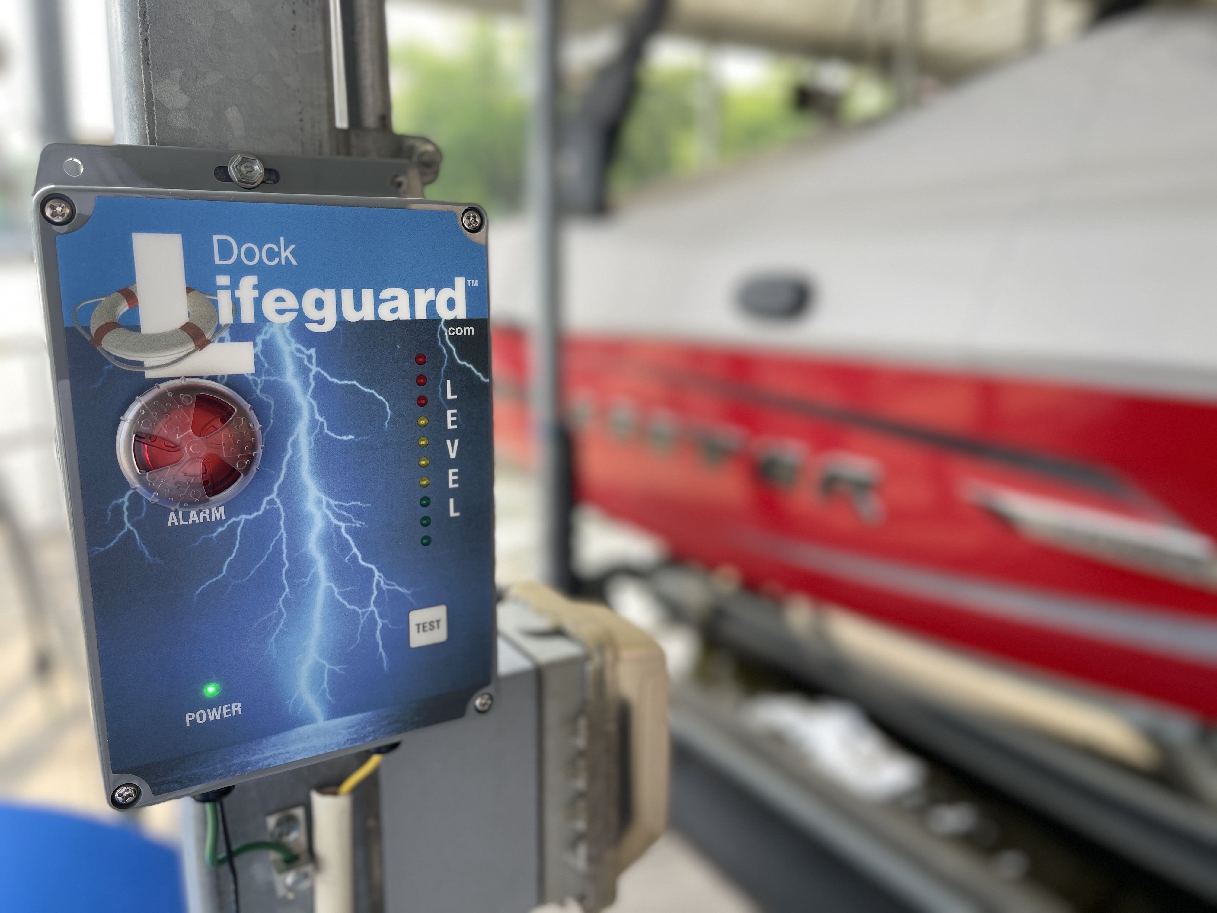 Dock Lifeguard is a real-time electrical detection system designed to identify dangerous stray voltage in and around docks, boat lifts, and waterfront structures. Unlike standard GFCIs that only protect equipment on land, Dock Lifeguard continuously monitors the water itself, detecting electrical current as low as 80 millivolts before anyone gets in. It uses sensors to monitor roughly a 40-foot radius around your dock. If unsafe current is detected, the system instantly triggers bright visual alerts and a 90+ dB audible alarm to warn everyone nearby. It can even be configured to automatically shut off power to the dock, eliminating the hazard at the source.